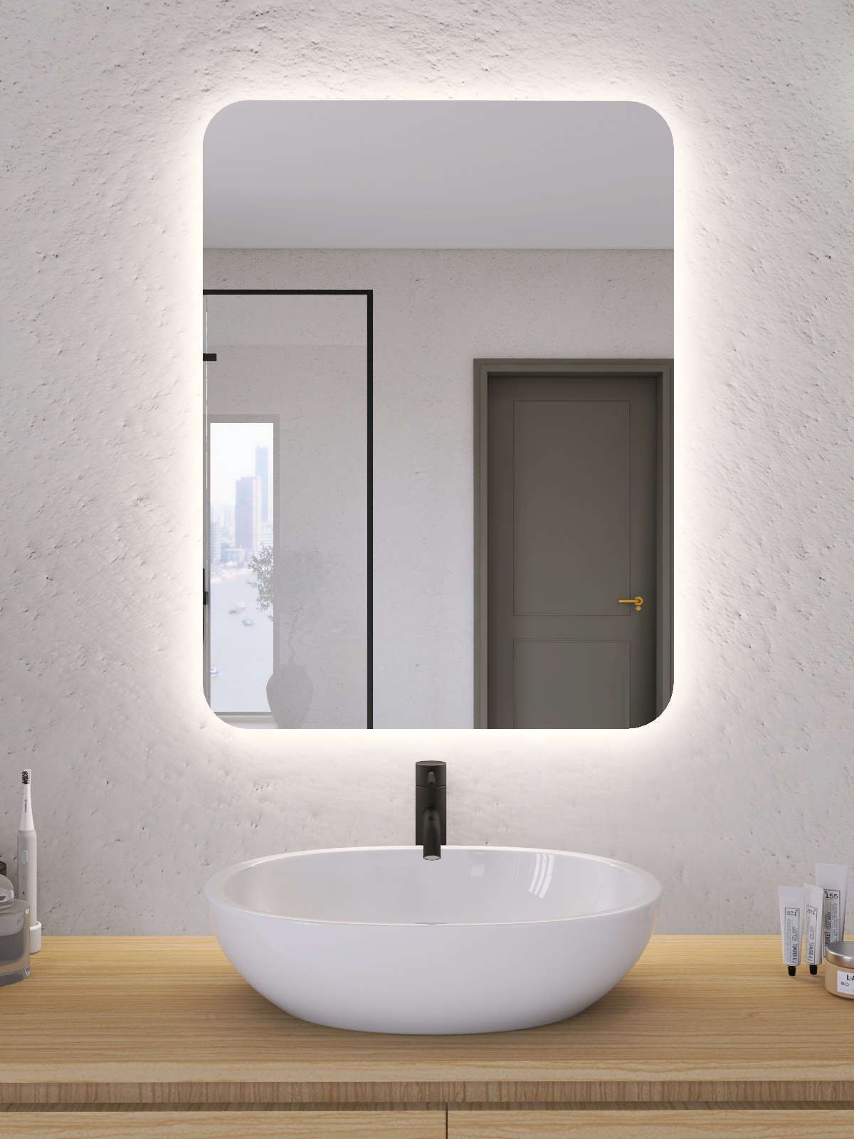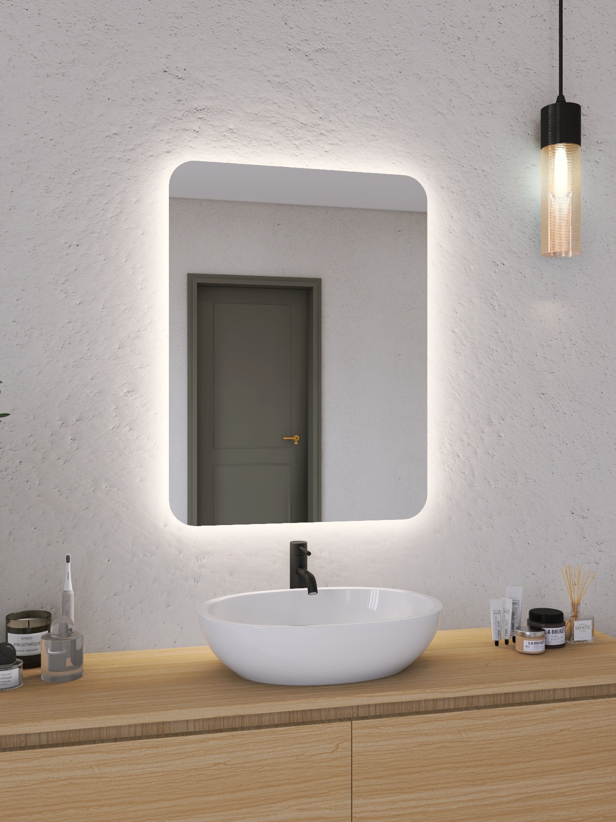 Nowoczesne Lustro Łazienkowe z Oświetleniem LED i Zaokrąglonymi Rogami – 60x80 cm