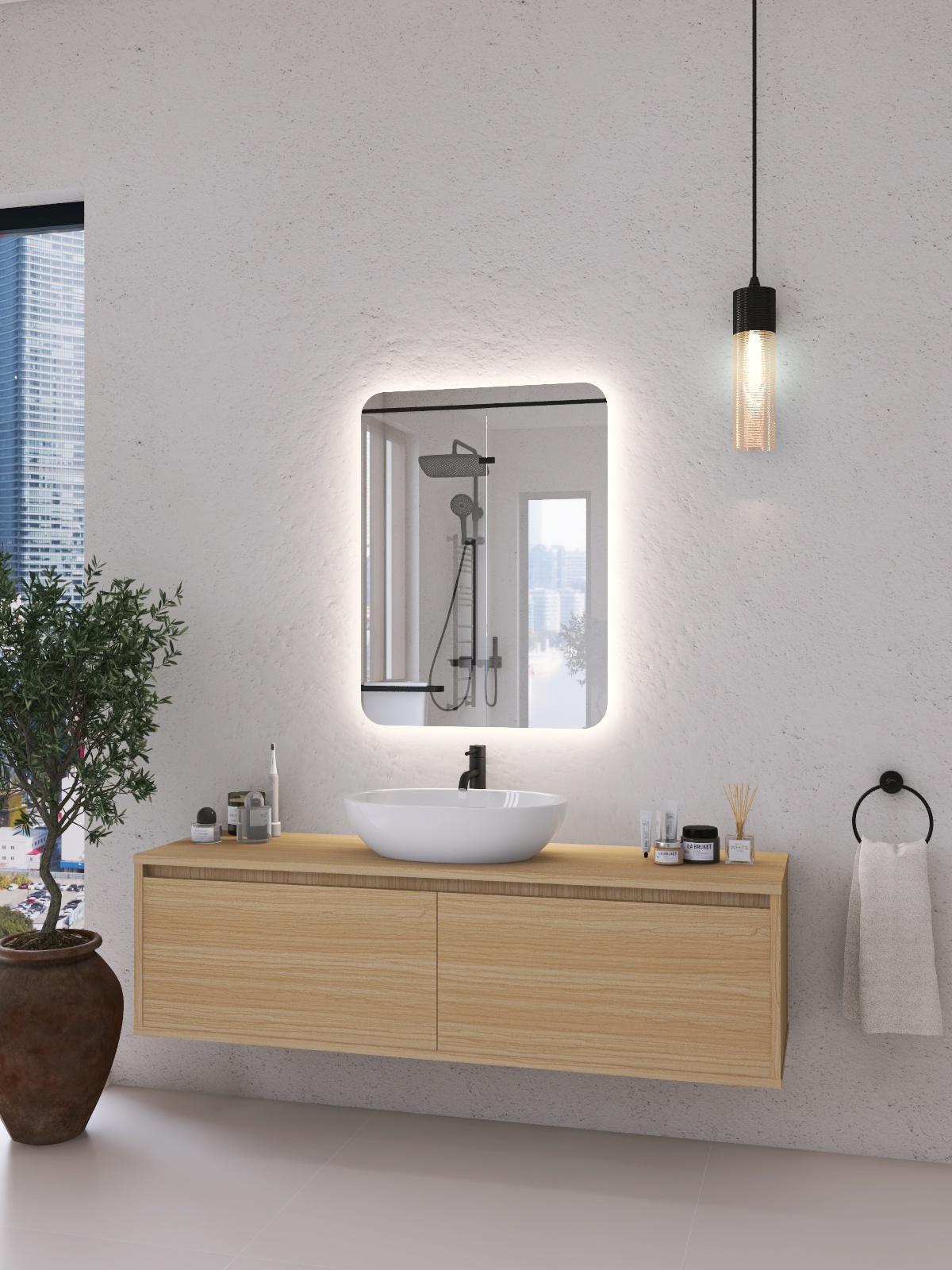 Odkryj luksus, na który zasługujesz. Nasze flagowe lustro o wymiarach 60x80 cm to coś więcej niż tylko tafla szkła. To inteligentne połączenie nowoczesnego wzornictwa z zaawansowaną technologią oświetleniową. Dzięki zastosowaniu zaokrąglonych narożników, klasyczna forma zyskała miękkość i designerski sznyt, który doskonale wpisuje się w najnowsze trendy soft modern oraz styl skandynawski i minimalistyczny.