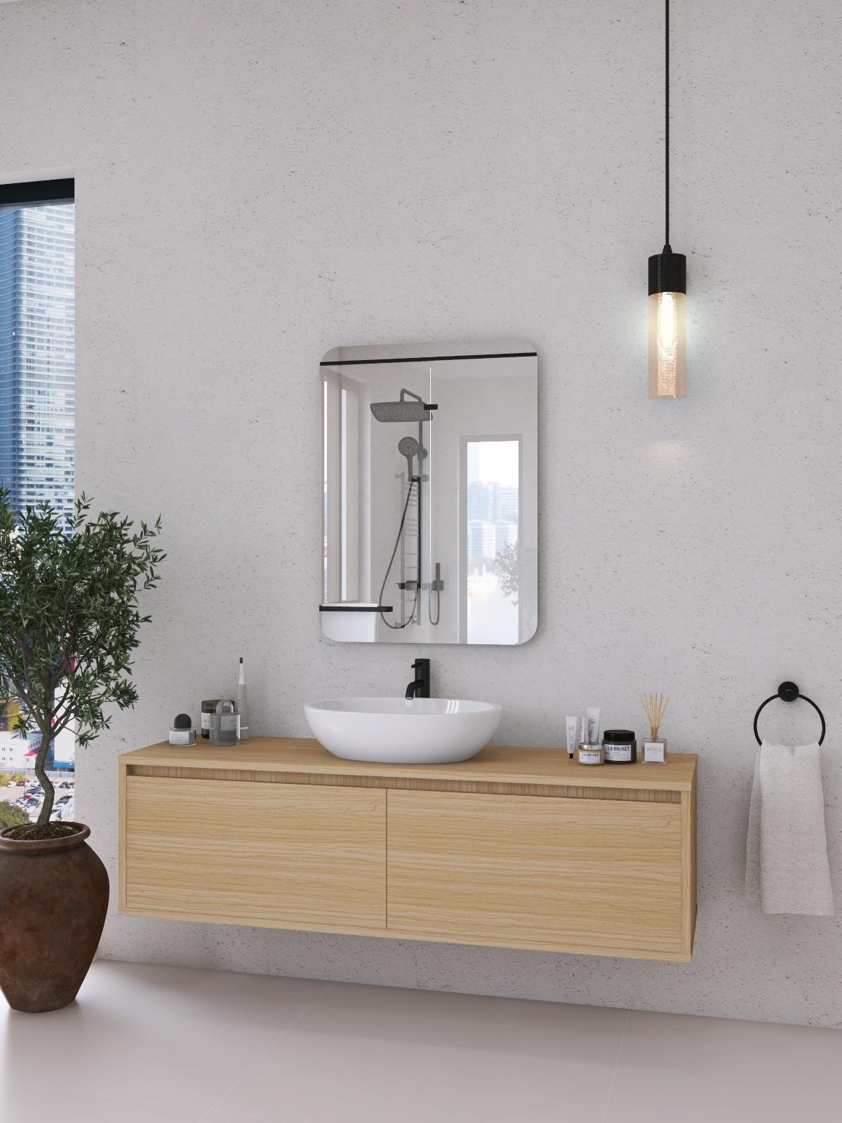 Lustro z zaokrąglonymi rogami jest niezwykle uniwersalne – jego bezramowa konstrukcja sprawia, że „wtapia się” w otoczenie, dodając mu lekkości i optycznie powiększając przestrzeń.