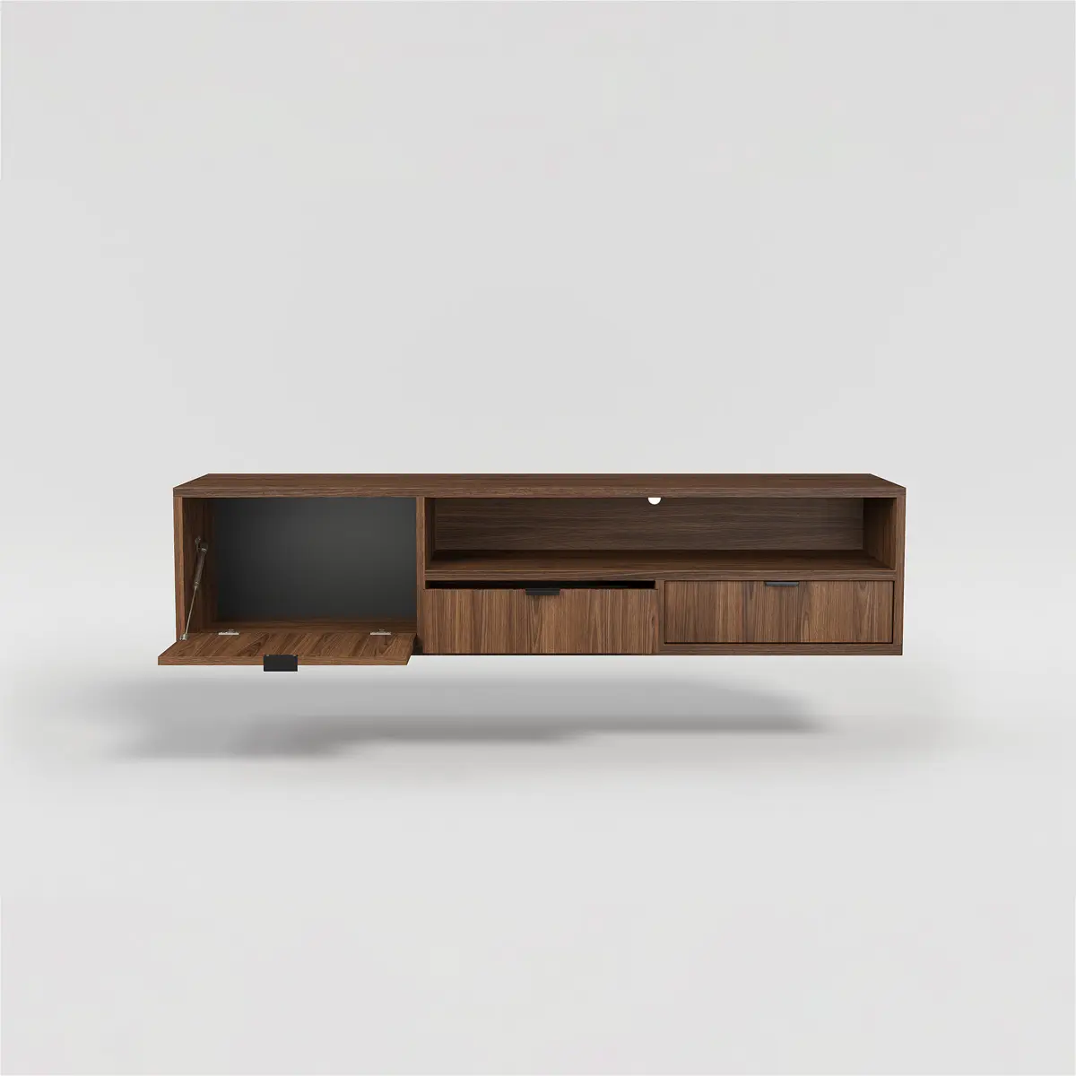 Półka Uchylna (Klapa): Zastosowanie mechanizmu uchylnego w jednej z sekcji pozwala na szybki dostęp do akcesoriów, które chcesz ukryć przed wzrokiem gości.