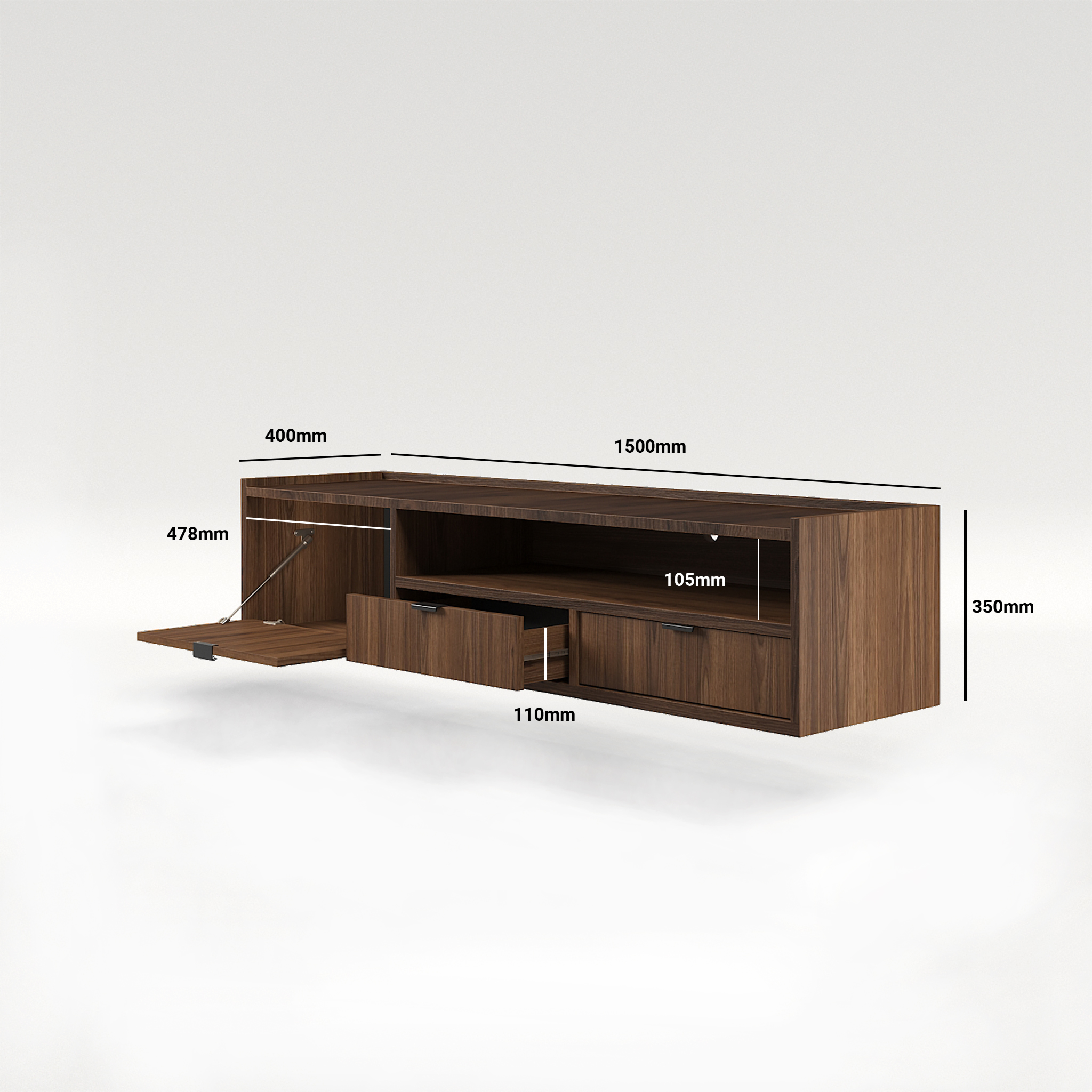 | Układ wnętrza | 2 szuflady, 1 półka uchylna (klapa), 1 wnęka otwarta |